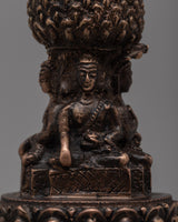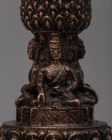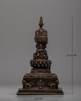 This Traditional Sacred Buddhist Brass Stupa is properly created from oxidized brass, with an antique finishing that adds to its historical and spiritual significance. This stupa, standing 21.5 cm tall and 13 cm wide and weighing 1.06 kg, is a stunning example of Buddhist sacred art. The oxidized brass displays old wisdom and devotion, making it an excellent addition to any room dedicated to meditation and reflection. Its intricately designed artwork represents the deep-rooted Buddhist traditions, providing beauty and meaning to your spiritual space.