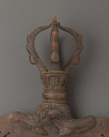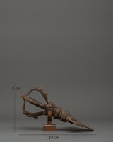 The Kartika Knife, also known as the flaying knife, is especially significant in Tibetan Buddhism. It denotes the elimination of ignorance, ego, and worldly attachments. The crescent-shaped blade is frequently connected with the knowledge of deities such as Vajrayogini, representing change and spiritual enlightenment. The intricate Vajra handle symbolizes unbreakable strength, emphasizing its importance as a spiritual weapon against harmful energy. This Tibetan ritual instrument is ideal for Buddhist practitioners, collectors, or as a meaningful spiritual gift, and it exemplifies the rich tradition of holy Buddhist items.