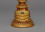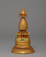 This treasured Buddhist Stupa for Meditation represents enlightenment, tranquility, and the journey to awakening. This delicately carved stupa, made of copper and gold-plated, is a potent meditation tool that radiates divine blessings and spiritual energy. Stupas have traditionally represented the Buddha's enlightened knowledge and served as an attraction for meditation and devotion.