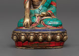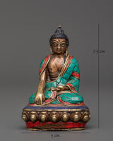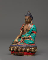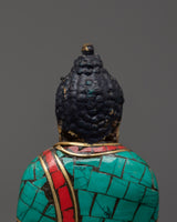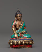 This statue is expertly made from oxidized copper and decorated with brilliant artificial stones such as turquoise, coral, and lapis lazuli, exuding timeless beauty and spiritual energy. Each stone is carefully inlaid to symbolize healing, protection, and spiritual clarity. Whether displayed in a meditation room, on a Buddhist shrine, or given to a loved one on their spiritual journey, this Buddha figurine is a daily reminder of tranquility, awareness, and the path to nirvana.
