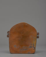 The elaborate pattern depicts Dzambhala, the deity of prosperity and abundance, seated and clutching a precious diamond and a mongoose, which represents wealth-spreading power. The intricate carvings around the box signify the never-ending flow of blessings and protection. The silver body heightens the religious aura, while the copper embellishments highlight durability and history. Each part of the design has significant spiritual significance, resulting in an ideal balance of craftsmanship and divinity. This Ghau box is ideal for a peaceful altar setting or as a meaningful spiritual gift, and it serves as a reminder of the Buddhist road to prosperity, harmony, and enlightenment.