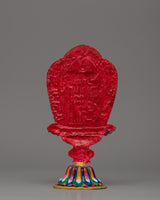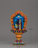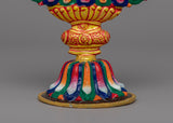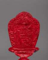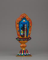 Perfectly carved from brass and hand-painted with colorful, symbolic colors, this Kalachakra is a Tibetan ritual artifact. It is a powerful symbol of cosmic harmony and spiritual development, standing 16 cm tall and 8 cm wide. In Tibetan Buddhism, the Kalachakra, also known as the "Wheel of Time," is recognized as an essential representation of enlightenment, protection, and purification. This piece serves as a sacred tool for meditation, rituals, and spiritual practices in addition to being an artistic expression.