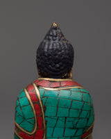 This copper statue is carefully inlaid with shining artificial stones such as coral, turquoise, and lapis lazuli, which allow depth and symbolic color. Every detail, from the meditative position to the delicate facial expressions, highlights the artist's expertise and dedication. This statue is ideal for practitioners, collectors, and those looking to create a spiritual ambiance. It is a symbolic connection for reflection, inner serenity, and Buddha's teachings.