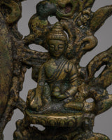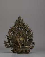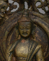 Shakyamuni Buddha is featured in the center of this beautifully designed statue, symbolizing his enlightenment and the wisdom he shared with humanity. A fire-shaped halo surrounds him, symbolising the transformational power of his teachings in dispelling ignorance and suffering. The five Buddhas encircling him represent the union of the five wisdoms, demonstrating the Buddha's entire wisdom. A lion and a rabbit are engraved on either side of the statue, representing power and tenderness, which balance the Buddha's teachings of compassion and mindfulness. The Buddha sits on a lotus seat, which represents purity and the route to enlightenment, as the lotus flower emerges from the dirt but remains uncontaminated by it.