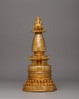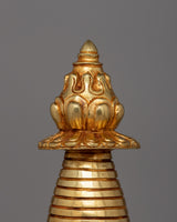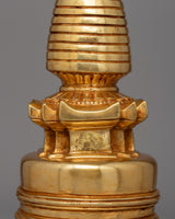 This Stupa is handcrafted with unique details and plated with gold for Nourishment and Restraint in your life.