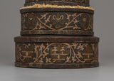 The mandala offering set is used in Buddhist rituals to represent the cosmos and the act of giving, which helps practitioners grow awareness and dedication. Its multilayer construction and intricate craftsmanship make it more than just a useful ceremonial instrument; it is also a work of art that represents centuries of cultural legacy. Whether for personal use, as a centerpiece for your shrine, or as a thoughtful present, this mandala set is guaranteed to elicit awe and adoration.