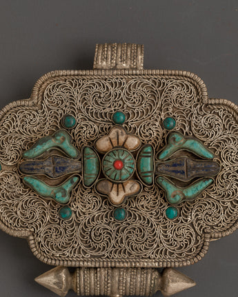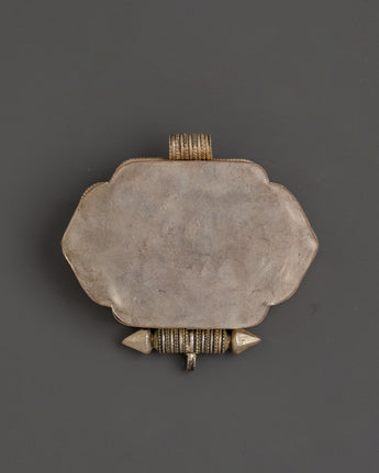 Sacred Tibetan Ghau Box with Turquoise | Silver-Plated Amulet