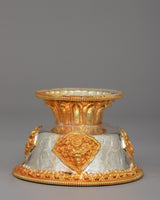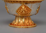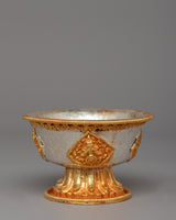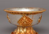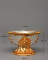 These bowls are beneficial ritual regulates and exquisite spiritual décor due to their superb craftsmanship and dual plating. They are ideal for meditation, offerings, and ceremonial purposes due to their copper body's longevity and the gold and silver plating that highlights their spiritual value.