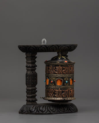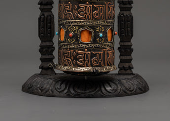 Sacred Tibetan Spinning Mantra Wheel | Copper, Coral, and Turquoise Stones
