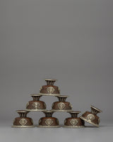 Seven Tibetan Offering Bowls | Beautiful Motifs for Rituals & Ceremonies