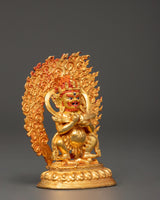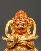 Electro Gold Plated Shakya Mahakala Statue with Pure Gold Powder Face