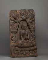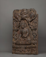 This wooden sculpture of Shakyamuni Buddha is more than just a statue. It symbolizes enlightenment and spiritual guidance. The base's floral designs reflect awakening's purity and beauty, while the Kirtimukha and Makara heads serve as protective and transformative symbols. This stunning piece beautifully captures Buddhist teachings, making it both an artistic masterpiece and a source of inspiration for the spiritual journey.