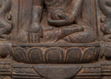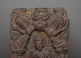 Hand-carved wooden Shakyamuni Buddha with Kirtimukha Carved In Halo Statue