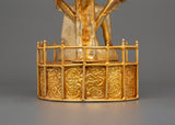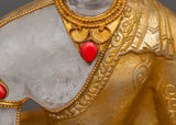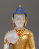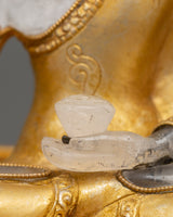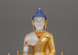 This stunning Shakyamuni Buddha under Bodhi Tree Statue represents a deeply adored occasion in Buddhist tradition: the Buddha settled in meditation under the Bodhi Tree, when he achieved enlightenment. Standing 31 cm tall and weighing 1.86 kg, this spiritual sculpture is created explicitly from copper, plated with dazzling gold, and embellished with stunning crystal inlays. The design reflects serene energy, making it an excellent addition to any altar, meditation place, or collector's exhibit.
