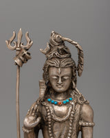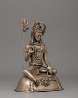 This Shiva statue is 21 cm tall, weighs 1.214 kg, and is made of copper and silver-plated for a beautiful finish. Shiva, known as the destroyer and transformer in Hinduism, is portrayed here in a sitting, contemplative stance with elaborate craftsmanship. His traditional features, including the trident and calm countenance, represent heavenly strength and inner serenity. The turquoise and coral stones on his necklace give a touch of holy beauty, making this statue more than just a beautiful artwork, but a powerful symbol of change and spirituality.