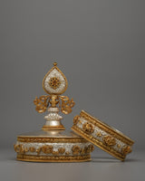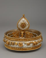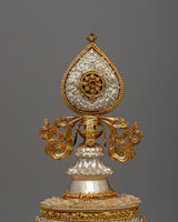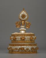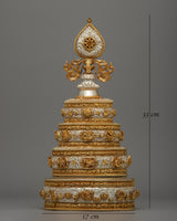 This stupa, designed with incredible precision, is both a reflection of artistic quality and a representation of profound Buddhist teachings. The gold coating improves its aesthetic appeal and symbolic value, representing knowledge and purity. This Mandala Stupa, perfect for rituals, offerings, or as a meaningful present, is a timeless treasure for both practitioners and collectors