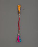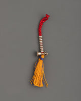 The silver Chupsel mala counter is a traditional Tibetan Buddhist tool for keeping track of mantra recitations and prayers. This attractively designed counter is expertly produced from 92.5% sterling silver and embellished with artificial stones, ensuring a smooth and peaceful meditation experience. It measures 12cm in length and easily attaches to mala beads, making it an indispensable accessory for Buddhist practitioners and spiritual seekers.