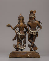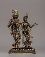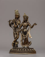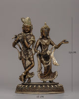 Silver-Plated Brass Radha Krishna Statue - Symbol of Love & Devotion