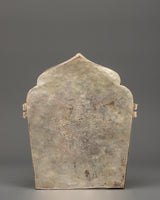 A small window in the front of the shrine allows visitors to see the encased deity or relic, which is surrounded by exquisitely detailed lotus flowers, infinite knots, conch shells, parasols, and other Eight Auspicious Symbols. Lions, birds, and renowned animals are also shown, representing strength, knowledge, and divine presence, respectively. The entire surface is surrounded by floral vines and sacred geometry, representing harmony, protection, and the interconnectedness of all beings. This Ghau box is ideal for personal use on an altar, travel, or as a holy present. It provides spiritual attention, blessings, and portability.