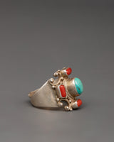 Silver Tibetan Ring | Ring with Turquoise and Coral