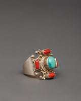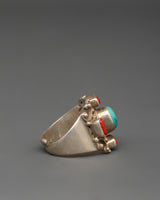 Silver Tibetan Ring with Turquoise & Coral | Handmade Silver Ring