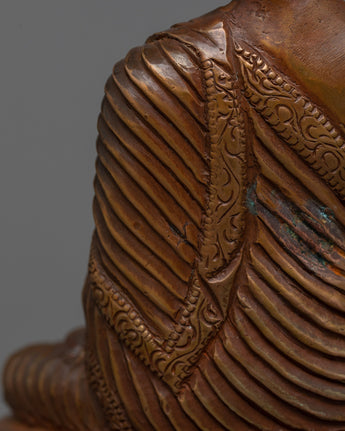 This statue is ideal for developing a healing and peaceful environment in your home or meditation place, and it serves as a powerful reminder of Medicine Buddha's teachings. Its intricate artistry and calming presence make it an excellent addition to any spiritual setting, fostering a sense of calm and well-being.