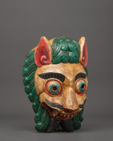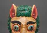 Handcrafted Wooden Snow Lion Mask | Symbol of Tibetan Strength and Fearlessness
