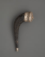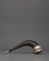 Tibetan and Himalayan cultures have long utilized snuff horns to store snuff during religious ceremonies or daily activities. This snuff horn is adorned with intricate silver work and coral stones, enhancing its visual appeal and spiritual significance. As you hold this snuff horn, allow the energy of ancient traditions to guide you on your spiritual journey. The yak horn, symbolizing strength and endurance, represents a deep connection to nature and the earth, making this piece a ceremonial instrument and a powerful spiritual companion.
