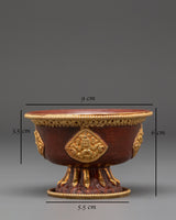 The design of this Spiritual Altar Offering Set reflects the mastery of Tibetan metal craftsmanship. Every bowl features hand-engraved auspicious symbols representing prosperity, protection, and enlightenment — including motifs such as the endless knot and lotus petal borders. The copper base gives it an earthy warmth, while the gold-plated detailing enhances its sacred beauty. The raised pedestal design elevates the offerings in reverence, aligning with traditional altar aesthetics. Whether filled with water, grains, or flowers, these bowls bring an aura of devotion and harmony to any spiritual space.