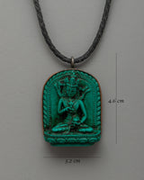 The green resin carving is expertly crafted and protected in a copper frame, making this locket a profound spiritual charm. It weighs only 0.010kg but has incredible spiritual significance. Whether worn as a symbol of regeneration, a meditation tool, or a protection charm, this Vajrasattva necklace promotes inner peace and spiritual advancement. This artwork is an excellent present for Buddhist practitioners, meditation admirers, and seekers of enlightenment as a reminder of divine wisdom and the power of purification.