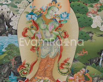 Standing Goddess Green Tara Canvas Print | Tibetan Bodhisattva of Compassion