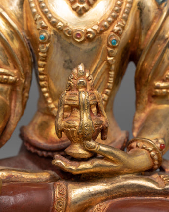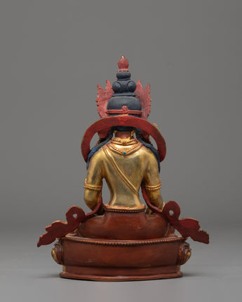 Statue of Kshitigarbha | Oxidized Copper, Gold Plated, Coral & Turquoise