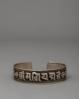 Sterling Silver Om Mani Padme Hum Bracelet  - Tibetan Spiritual Cuff
