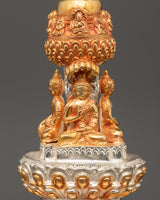 Tibetan Stupa and Vajra Set | Sacred Copper Ritual Items with Gold & Silver Plating