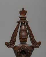 The stupa is meticulously crafted to represent the Buddhist principles of enlightenment and the path to Nirvana. Its design is based on the sacred structure used by Buddhists to house relics and sacred offerings. Made of durable copper, the oxidized surface adds a sense of historical and spiritual significance, making it ideal for spiritual decor or meditation spaces. The weight of 1.17 kg ensures stability and draws attention to its elegant craftsmanship.