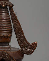 This Stupa for Decor is a beautifully crafted piece made of oxidized copper, with a timeless appearance that complements any sacred or decorative space. Standing at 23 cm tall and 11.5 cm wide, it is intended to be a striking focal point while remaining compact enough for display in various settings. The oxidized finish enhances its ancient and sacred appearance, giving the design depth and richness.