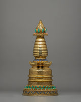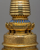 Handcrafted 24K Gold Gilding Copper Stupa with Floral Carving