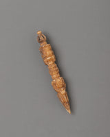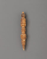 Our hand-crafted Tantric Ritual Dagger Phurba, expertly carved from ethically obtained buffalo bone, stands 8 cm tall and 1.5 cm wide, with an exceptionally lightweight framework weighing 0.004 kg. The beautiful carvings on this sacred Buddhist dagger demonstrate exceptional craftsmanship, making it a great ritual artifact for rituals, spiritual protection, and meditation activities. The natural buffalo bone material has a significant spiritual significance in Tibetan Buddhism, representing transformation and impermanence.