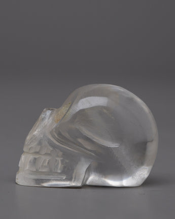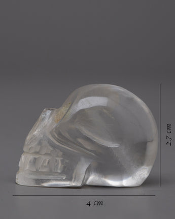 Discover the captivating attraction of the Crystal Skull, skillfully carved from a single piece of crystal stone. Standing at just 2.7 cm tall, this miniature masterpiece embodies the sense of mystery and intrigue, beckoning you to explore its captivating depths.