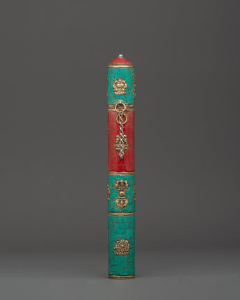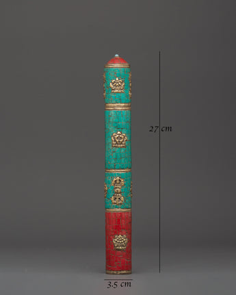 Combining turquoise and coral adds to its visual appeal while conveying significant symbolic benefits. Turquoise symbolizes calm and protection, whereas coral denotes life energy and courage. This lightweight incense holder, weighing only 0.17 kg, is ideal for storing your favorite incense sticks, providing a pleasant and peaceful ambiance for meditation and prayer. Its creative design and cultural importance make it a perfect present for spiritual practitioners and Tibetan art supporters.