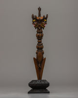This Dorje Phurpa Vajra Dagger, which comes with a wooden stand, is a sacred tool for rituals and meditation exercises in addition to being a beautiful ornament. It's a treasured addition to any altar or sacred space because of its elaborate design and symbolic value. As you set out on your spiritual path towards enlightenment and inner peace, embrace the age-old teachings of Tibetan Buddhism and harness the transformational energy of the phurba.