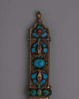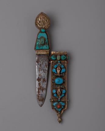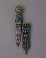 Historically, knives like these have had a variety of functions in Tibetan culture, ranging from functional instruments to ceremonial artifacts used in ceremonies and offerings. They embrace traditional values and traditions while also representing workmanship and spiritual dedication. Beyond their mechanical purpose, such knives are frequently admired for their elaborate designs and the spiritual ideals that inspired their creation. The Tibetan Buddhist Knife, whether displayed as a symbol of cultural heritage or used in ceremonial rites, represents a meaningful relationship to Tibetan traditions and beliefs, making it a valuable artifact for both collectors and practitioners.