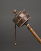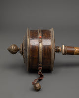 Tibetan Buddhist Oxidized Prayer Wheel | Oxidized Copper & Wooden Mantra Spinner