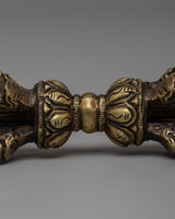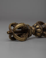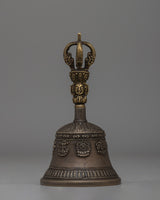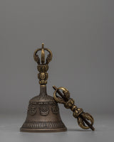 This elaborately designed set made of bronze showcases traditional Tibetan elegance and skill. With a total weight of 0.618 kg, this set is both powerful and artistically appealing, making it excellent for use in rituals or as a significant addition to your spiritual decor. Whether employed for personal meditation or formal ceremonies, this Tibetan Bell and Vajra combination is an effective instrument for building attention and inner peace.