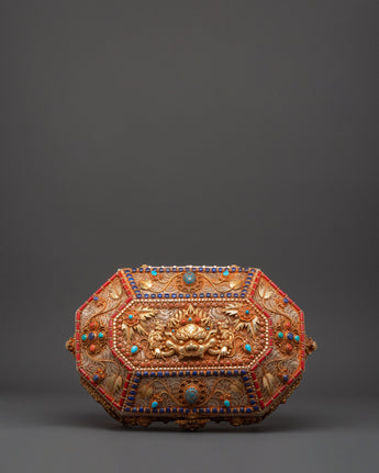 Tibetan Decorative Treasure Box | Buddhist Treasure Box with Turquoise & Coral Inlays