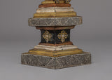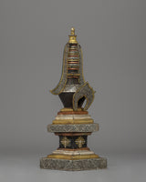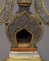 Iron, Copper & Silver Inlaid Tibetan Dharma Stupa for Buddhist Altar & Meditation