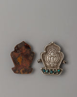 This stunning Silver-Plated Tibetan Ghau Box Pendant, measuring 4.2 cm in height and 3.7 cm in width, is a little and essential piece of spiritual jewelry. It weighs only 0.014 kg and is composed of copper with silver plating and turquoise. This Ghau, traditionally used as a portable prayer box, is ideal for transporting sacred mantras, relics, or modest sacrifices, making it an essential addition to meditation or spiritual practice.