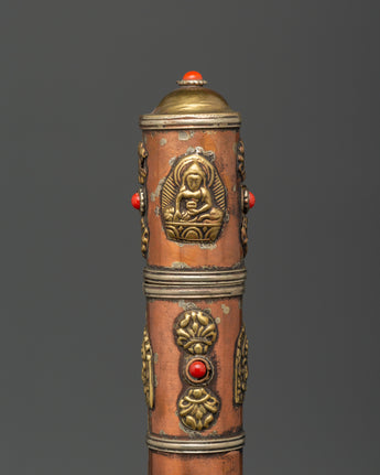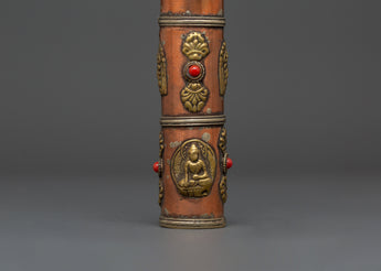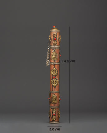 With our Historical Tibetan Incense Holder with Brass, you can infuse your area with the spirit of Himalayan culture. This handcrafted item is an excellent option for meditation, rituals, or as a striking decorative element, considering its beautiful brass designs and colorful coral inlays. At 29.5 cm in height and 3.5 cm in breadth, its sleek, elegant design and lightweight design (0.13 kg) guarantee convenience while enhancing your altar with an element of divine beauty.