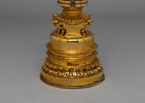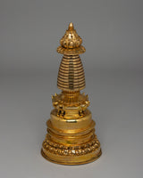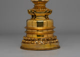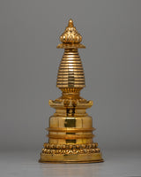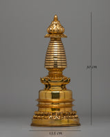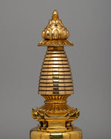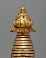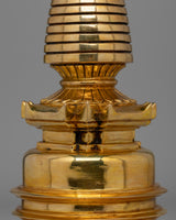 Stupas have great religious significance in Buddhist tradition because they represent the Buddha's thoughts and serve as an altar for meditation and devotion. This gold-plated stupa not only improves your spiritual practice, but it also adds a sense of calm, harmony, and wisdom to your house or shrine. This stupa is ideal for meditation or as a centerpiece in your altar arrangement, as it radiates serenity and acts as a continual reminder of the path to enlightenment.