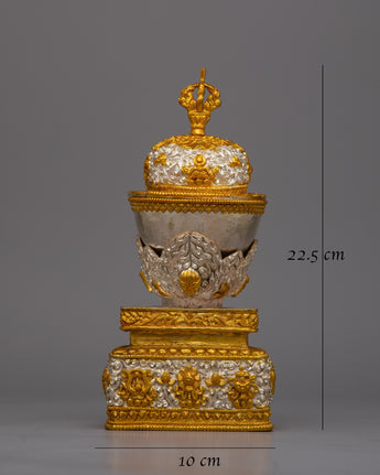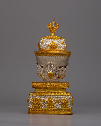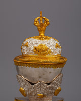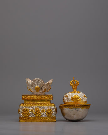 The Kapala set holds the nectar used for performing higher esoteric rituals. It offers liberation to gods and deities to ensure their devotion. It is said that the offerings will be transformed into the Wisdom Nectar, a liquid form of the Deity's Enlightened Mind.